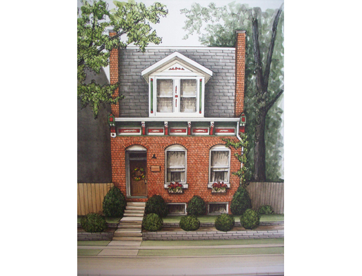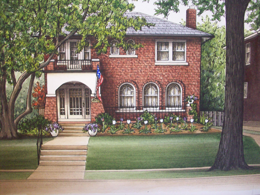 Delmar Blvd Home, pen & ink with acrylic paint washes on paper