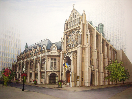St. James Chapel, Chicago, pen and ink and colored pencil on paper